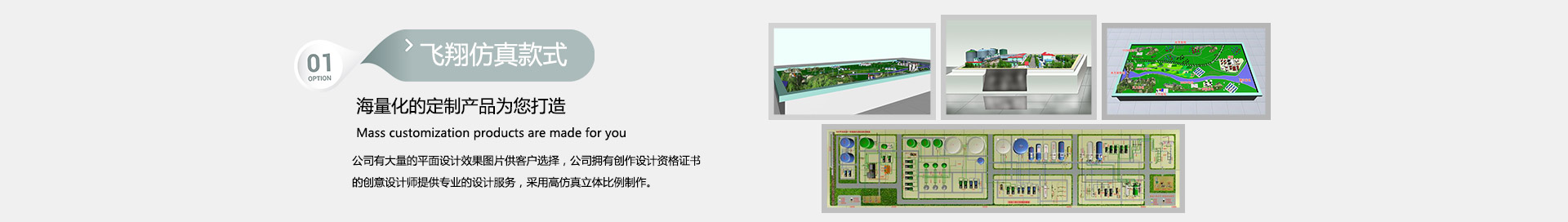 長沙市飛翔仿真模型有限公司專業制作石油化工、水利水電、工業設備、地質地貌、新能源科普、大型機械設備,動態智能演示……等教學展覽仿真模型,是集實訓室裝置及模型設備設計開發、生產制作、銷售服務為一體的專業綜合性企業。公司秉承著專業的設計理念,高級的制作工藝,高品質的服務態度,完善的售后體系,為您提供高端模型產品,力爭滿足客戶的任何需求。